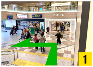 • 阪急「高槻市」駅改札口から出てすぐ、階段を下り、左に進みます。