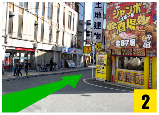 • 駅を出て、じゃんぼ總本店横の道を直進します。