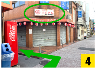 • すぐ中国居酒屋はるぴんが見えますので、手前の道を左に進みます。