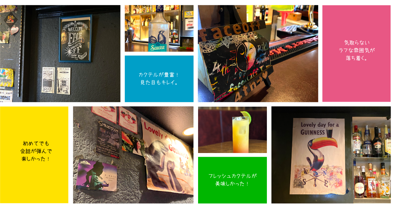 堅い雰囲気はありません。笑顔が溢れるアットホームな「フェイスオフ」にぜひ遊びに来てください。